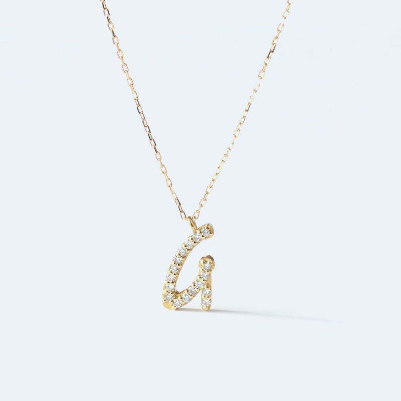 まるでいきいきとした女性のように、すっきりとシンプルでいて、絶妙な曲線が美しいイニシャル シングルチェーン ネックレス。 シングルチェーンが凛としたイメージを持ち、イニシャルにナチュラルダイヤを散りばめたこだわりのネックレス。